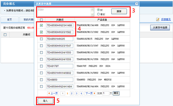 關鍵詞就是采購商搜索產品時最有可能用的名稱,例如IC產品的型號和非IC產品的產品名稱。關鍵詞代表買家的搜索習慣,不同的買家搜索習慣不一樣,所以如果要想效果更好,建議您多選擇關鍵詞,且盡量選擇搜索量大的關鍵詞。