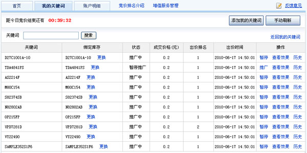 2、在我的關鍵詞頁面,可以查看我競價的關鍵詞.